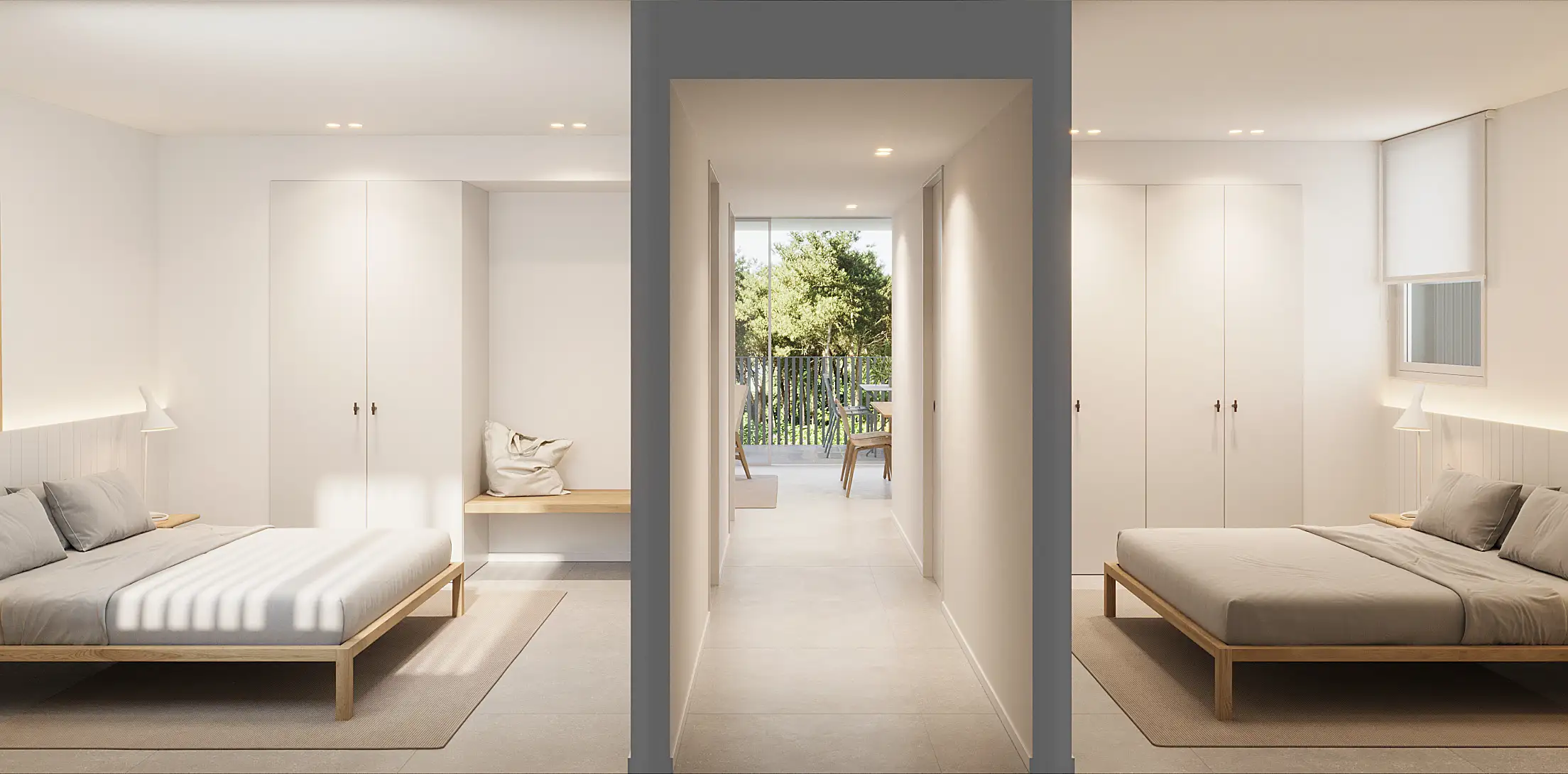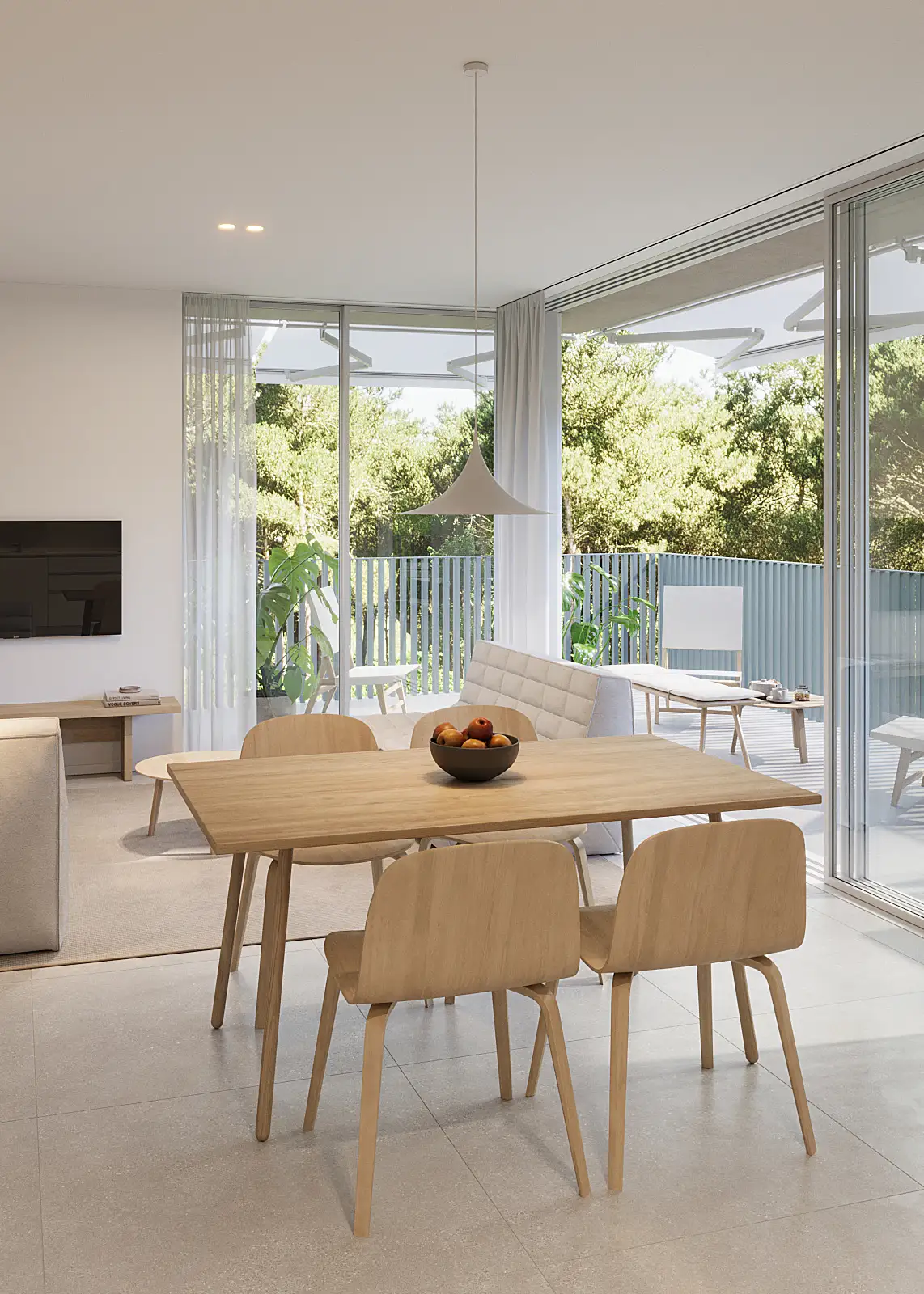 Cada apartament reflecteix un nivell d’acabat propi de l’excel·lència. Materials nobles, textures acollidores i solucions pràctiques s’integren per crear espais on el disseny i el confort conviuen en harmonia.